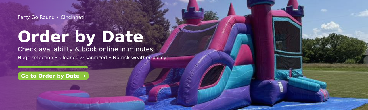 Choose Party Go Round for an effortless, comprehensive, and thrilling party experience in Cincinnati and its surrounding areas. Click here to order by date.