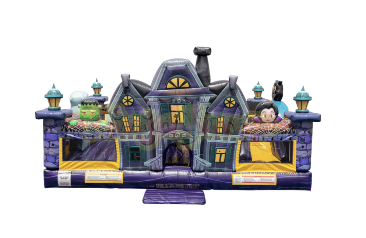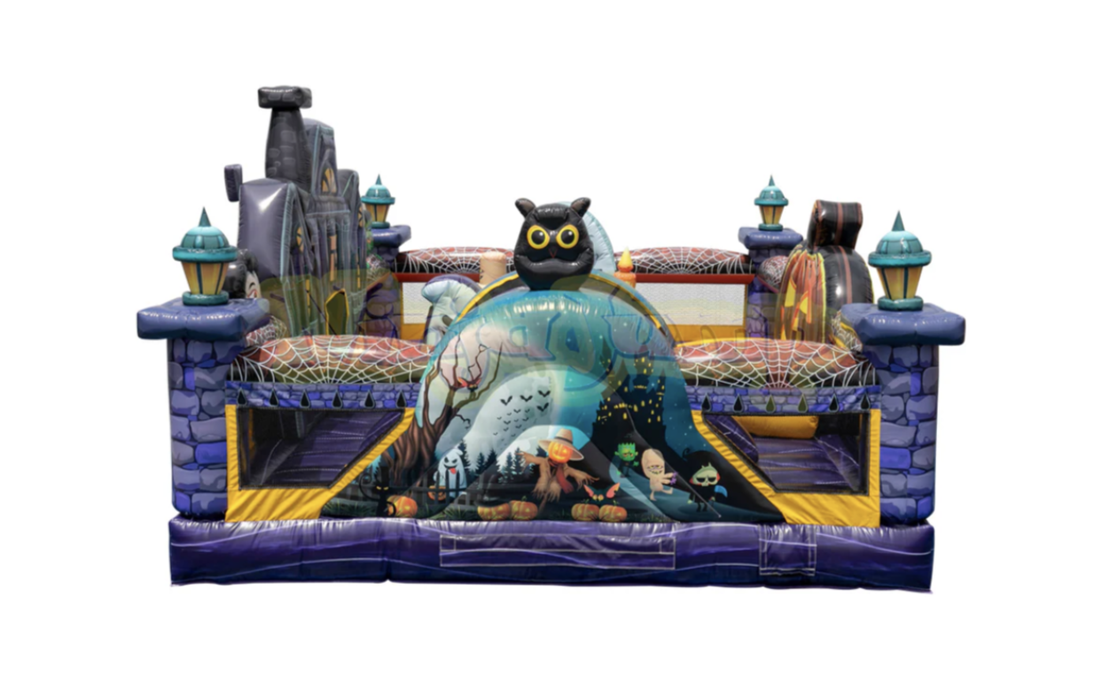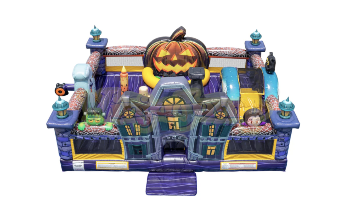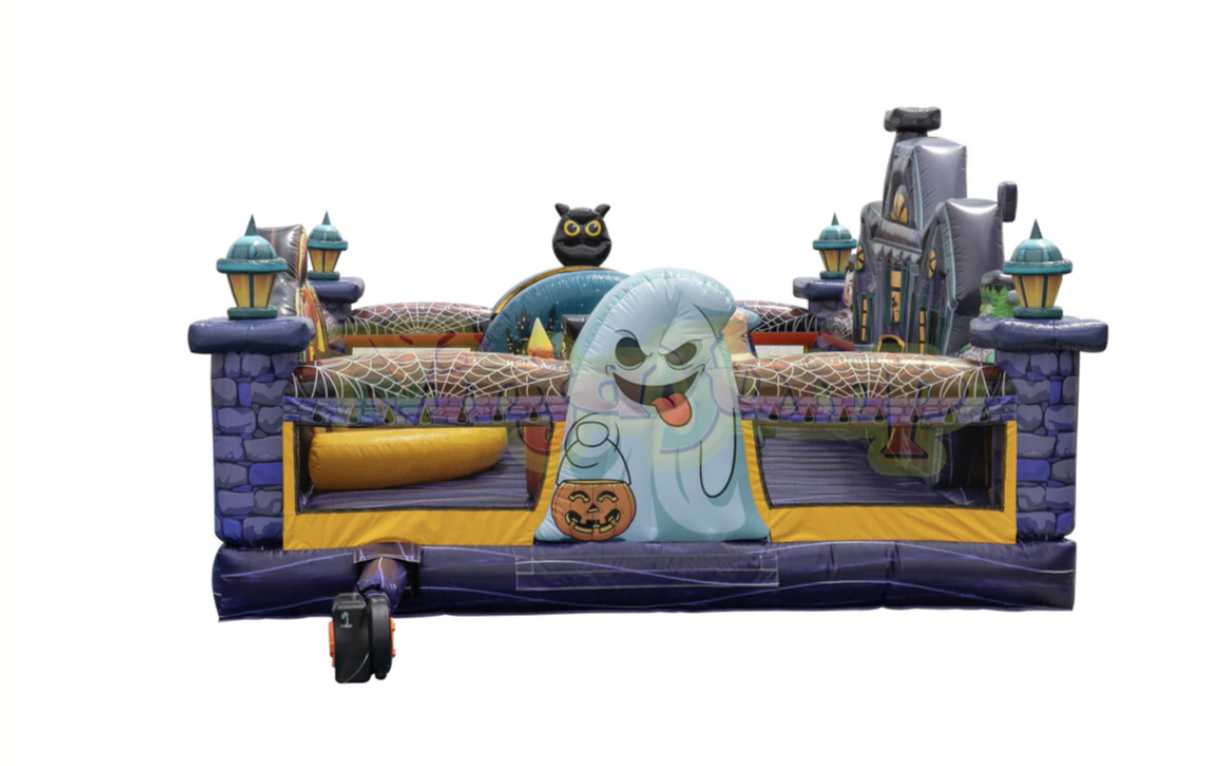Welcome to the Haunted Hideout — where friendly frights and spooky fun await! This Halloween-themed inflatable playland is perfect for younger kids but exciting enough for all ages to enjoy. Featuring a mini slide, fun pop-up characters like ghosts and monsters, and plenty of room to bounce and explore, it’s the ultimate Halloween adventure in a safe, enclosed space.