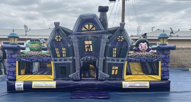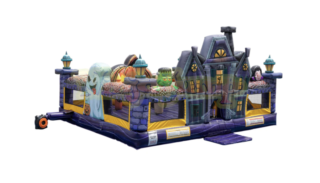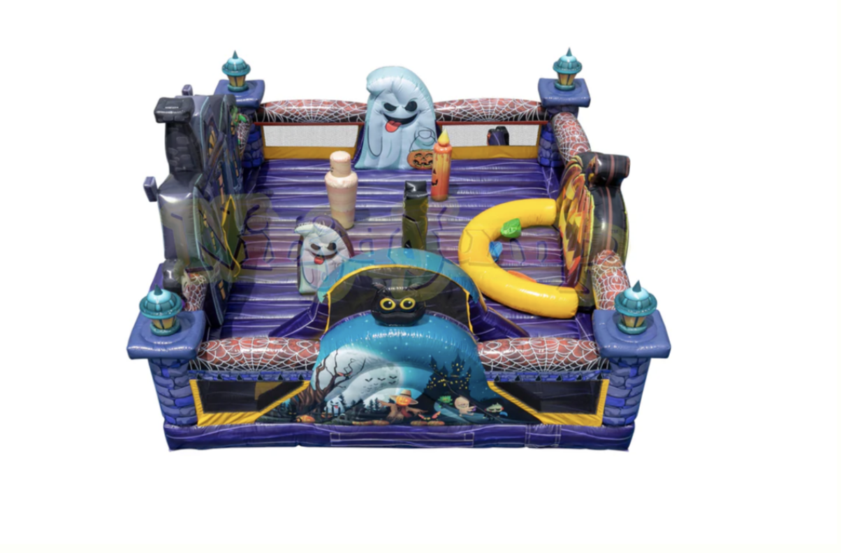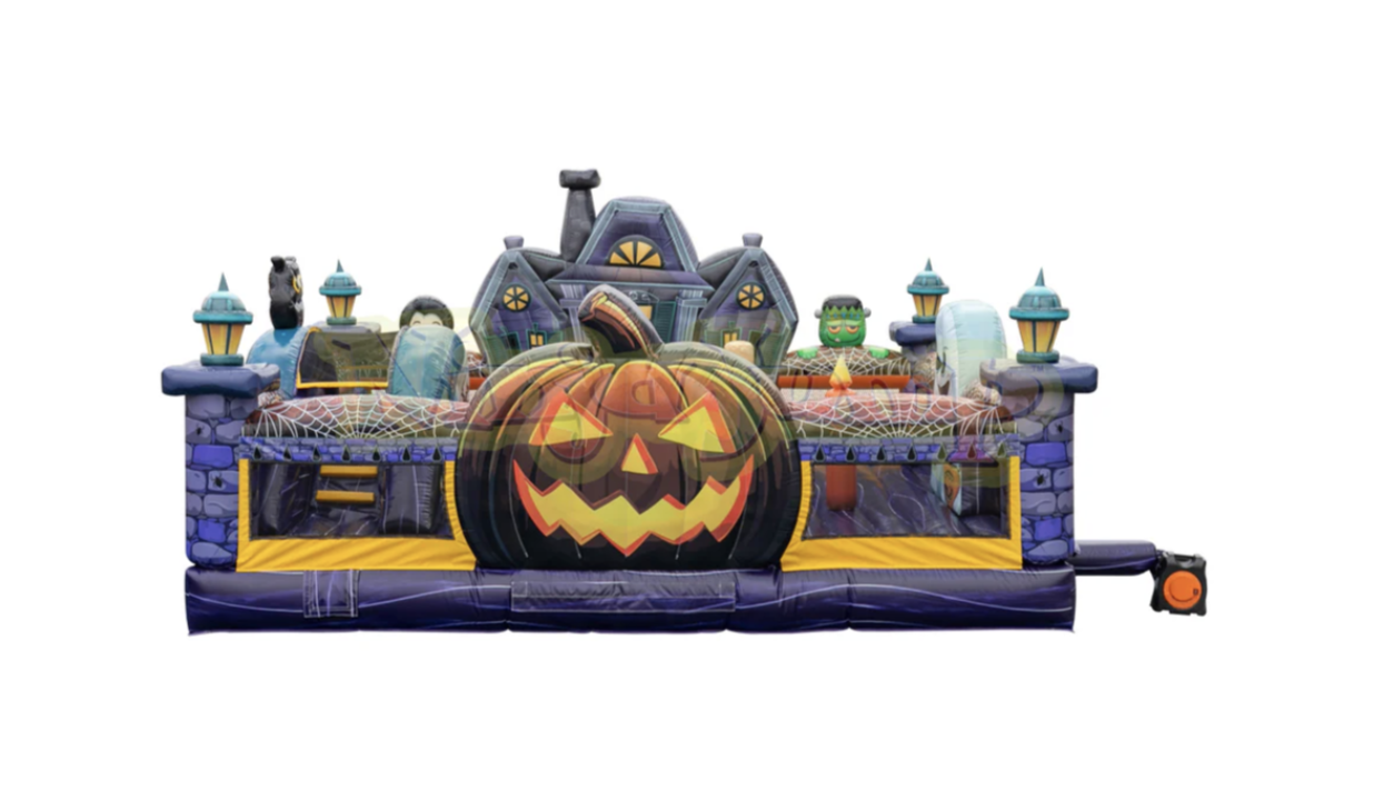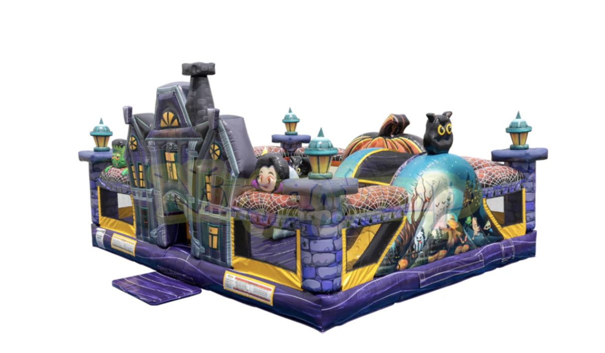 Welcome to the Haunted Hideout — where friendly frights and spooky fun await! This Halloween-themed inflatable playland is perfect for younger kids but exciting enough for all ages to enjoy. Featuring a mini slide, fun pop-up characters like ghosts and monsters, and plenty of room to bounce and explore, it’s the ultimate Halloween adventure in a safe, enclosed space.